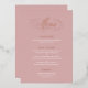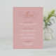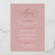 MYRA FOIL • Esta tarjeta de menú de cena de boda con letra clásica está diseñada para bodas románticas y/o formales. El fondo rosa junto con los encabezados de hoja de oro rosa real, la fabulosa caligrafía de letra y el estilo formal para el texto combinado hacen que esta colección atemporal sea un diseño perfecto para papelería de boda clásica. También es una buena opción para bodas de cuento de hadas.