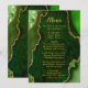 Muestre sus selecciones de comida con estilo con este elegante menú de boda con un diseño de mármol de ágata verde acentuado con detalles dorados. El fondo inspirado en geodas crea un aspecto sofisticado, perfecto para bodas de otoño e invierno, celebraciones formales o eventos nocturnos. Diseñado para coordinar con su suite de papelería de boda, este menú es ideal para presentar los platos claramente mientras agrega un toque lujoso a su decoración de mesa. La tipografía limpia garantiza la legibilidad y complementa la textura de ágata. Personalice fácilmente todo el texto para adaptarlo a los detalles de su menú y evento, lo que lo convierte en una hermosa opción no solo para bodas, sino también para fiestas de compromiso, aniversarios y otras ocasiones formales.