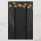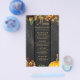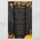 Plantillas botánicas florales de otoño y calabaza naranja oxidada sobre una madera oscura de granero con luces de cuerda menú de fiesta de cumpleaños.