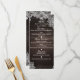 Menú de Boda de Madera Rústica Oscura y Encaje Ele