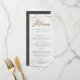 Crea tus propias Tarjetas de Menú de Boda de Mármol Geométrico Dorado Modernas personalizadas con estas plantillas fáciles de usar de WowWed. Estas tarjetas de menú geométricas presentan caligrafía dorada falsa, fondo de mármol blanco y tipografía elegante. En el reverso, hay un patrón geométrico dorado sobre un fondo gris.