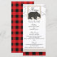 Menú de boda de Oso rústico y cuadros rojos del bo