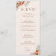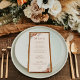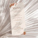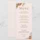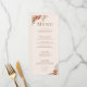 Completa tu decoración de mesas de boda con este elegante menú de boda de terracota boho, que presenta un arreglo floral romántico de hierba de pampas, terracota y flores silvestres beige, hojas de palma secas y follaje de eucalipto. Puesto en un fondo cálido y beige claro, el diseño ofrece una mezcla perfecta de encanto rústico y estilo refinado.