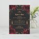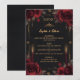 Eleva tus mesas de recepción con este Menú de Boda Gótico Dark Romance, que presenta un rico fondo negro, detalles refinados de inspiración vintage, rosas ricas, marco dorado elegante y elementos. Perfecto para recepciones con velas, lugares de castillo y bodas góticas de corbata negra.