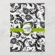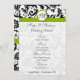 Invitaciones de boda con patrones de damasco floral blanco y negro vintage moderno con borde verde manzana. Perfecto para temas de boda Rococó Barroco, Renacimiento Medieval, Art Nouveau Art Déco, Gatsby de los felices años 20, Victoriano o Elegante granja.