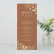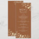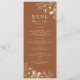 Menú de boda de terracota botánico boho moderno y simple, con flores silvestres doradas elegantes y letra manuscrita simple.