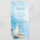 Nuestro menú de Boda acuático en barco de vela es la combinación perfecta de un ambiente de playa, tropical despreocupado. La acuarela azul hace las veces de telón de fondo y acentúa el velero sereno.