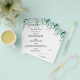 Un menú de boda moderno y trendy con vegetación de eucalipto y helechos del bosque. Fondo blanco. Personalice y agregue sus nombres y menú de cena de boda.