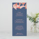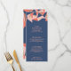 ***Personalice el aspecto de toda esta suite boda haciendo clic en el botón Personalizar azul para cambiar el fondo y los colores del texto.** Las facetas asimétricas de melocotón suave, coral brillante y Relieve metalizado de oro falso rosa se ven modernas y únicas en un fondo azul marino. Personalice la disposición moderna del texto con todos los detalles del menú de su recepción y deje a sus huéspedes entretenerse con su nueva visión de diseño y el gusto de vanguardia en las invitaciones. ¿No te gusta el azul marino? Cambie con el botón personalizar azul y ajuste a su esquema de color exacto. Esta tarjeta de recepción se coordina perfectamente con el resto de la suite Faceted Geode.
