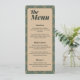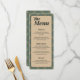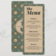 Eleva tu decoración de mesa con este menú moderno verde salvia y dorado. El intrincado patrón geométrico y la paleta vintage añaden un toque de diseñador a tu cena de boda formal.
