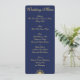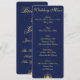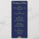 Invitaciones personalizadas de menú de boda náutico azul con brújula dorada y texto personalizable