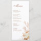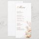 Esta tarjeta de menú de boda presenta hierba de pampas y flores de orquídea en una paleta de colores cálidos de terracota para un diseño de mesa boho cohesivo. Creado para parejas que aman las texturas naturales y el estilo botánico moderno. El diseño vertical destaca el menú mientras mantiene un ambiente elegante y aireado. Perfecto para bodas boho, rústicas, desérticas y al aire libre. Totalmente personalizable y diseñado para coincidir con la Colección de Boda de Orquídeas de Hierba de Pampas de Terracota.