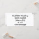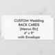 Menú de Boda Personalizada y Tarjeta de rack de programas con sobre, impresa en un gran peso de la cubierta blanca (100 lb.) con un acabado brillante, impresión de alta calidad, color completo y sangre completa. 4" x 9" (retrato) o 9" x 4" (paisaje). mínimo de 25 pedidos de tarjeta. Hasta un 50% de descuento en pedidos masivos.