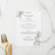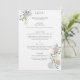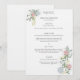 Este exquisito menú de boda está adornado con un elegante motivo floral que presenta delicadas rosas e hydrangeas entre hojas verdes exuberantes. La tipografía clásica y las fuentes serifas realzan aún más la sofisticación general.