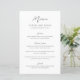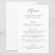 Menú de boda elegante con un diseño simple que presenta una fuente sans serif moderna y una fuente de escritura elegante.