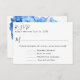 Tarjetas de respuesta del menú del jardín junto al mar. Incluya con las invitaciones de boda y pida a los invitados que elijan un plato principal de la lista del menú. También incluya texto para aquellos que no asistirán. Plantillas de papel blanco con texto negro. El diseño floral azul está en la parte posterior. Una estrella de mar blanca se coloca entre las flores y le da a esta respuesta un tema de verano o playa.