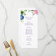 Esta carta boda cuenta con un borde superior de flores de bonito en colores de rosa violeta y azul enclavado entre hojas verdes. Su texto personalizado está en violeta morada en el medio. Esta tarjeta de menú es lo suficientemente versátil como para ser utilizada en una variedad de eventos, especialmente en primavera y verano. Tiene invitaciones matrimoniales y otros productos de boda en nuestra tienda.