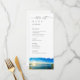 Menú boda a juego con una hermosa imagen acuarela del lago Tahoe.