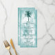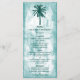 Estas tarjetas de menú son perfectas para cualquier pareja que planee una romántica celebración de bodas en la playa. El diseño presenta una palmera verde verde azulada tropical sobre un fondo de color turquesa y blanco con texturas en color y una redacción editable en color. El diseño sencillo puede ser personalizado para su evento especial y será el menú perfecto para cualquier fiesta tropical con temática, incluyendo duchas de novias, compromisos, duchas de bodas, fiestas de cumpleaños y mucho, mucho más.