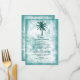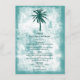 Estas tarjetas de menú son perfectas para cualquier pareja que planee una romántica celebración de bodas en la playa. El diseño presenta una palmera verde verde azulada tropical sobre un fondo de color turquesa y blanco con texturas en color y una redacción editable en color. El diseño sencillo puede ser personalizado para su evento especial y será el menú perfecto para cualquier fiesta tropical con temática, incluyendo duchas de novias, compromisos, duchas de bodas, fiestas de cumpleaños y mucho, mucho más.