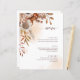 Delicadas flores acuáticas en tonos cálidos y tierra crean un ambiente de elegancia rústica, creando el escenario para una experiencia gastronómica inolvidable. Esta plantilla de personalizable ofrece un marco muy bonito para mostrar su cuidada carta boda, seduciendo a los clientes con su encanto sobrio y su sofisticado diseño.