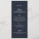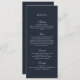 Trae un toque refinado a tu recepción con este menú boda marino, diseñado con una estética de dinero antiguo e intemporal. El fondo azul profundo y marino con una tipografía elegante lo convierte en perfecto para bodas de otoño e invierno, añadiendo un toque lujoso y sofisticado a las mesas de la cena. Una hermosa manera de guiar a los huéspedes por los cursos de la noche con estilo.