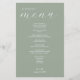 Menú de bodas elegante en verde sabio simple