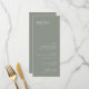 Presentamos nuestro "Sage Green Minimalista & Elegant Wedding Menu", una refinada y encantadora adición a la recepción de tu boda. Este menú boda presenta un entorno verde y sabroso, que complementa su diseño minimalista y elegante. La sencillez de la carta crea una sensación de sofisticación y tranquilidad que se corresponde perfectamente con el ambiente de su día especial. Diseñado con meticulosa atención a los detalles e impreso en materiales de alta calidad, nuestro menú boda garantiza una presentación refinada y refinada. Se convierte en un acento encantador para la configuración de la mesa, lo que permite a los clientes anticipar las delicias que les esperan. Disfrute de la belleza de la simplicidad con nuestro "Sage Green Minimalista & Elegant Wedding Menu" y deje que sus huéspedes saboreen los sabores con elegancia. Que este menú sea un símbolo de la atención y el cuidado que ha puesto en crear una experiencia gastronómica memorable. Los clientes podrán disfrutar del menú y dejar que el diseño verde sabio refleje la serenidad y el refinamiento de su celebración boda. Felicitaciones a su boda, y que este menú le añada un toque de sofisticación a su recepción, lo que lo convierte en un viaje culinario inolvidable para sus huéspedes.