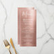 Menú Rubor Rosa Gold Moderno Faux Metallic Stainless Steel Relieve metalizado Boda. Este moderno menú de Bodas Dusty Pink y Black Script puede ser personalizado para incluir los nombres de Bride y Groom, la fecha boda y las opciones de menú boda para la cena. Este menú forma parte de una colección de bodas coincidente y se pueden solicitar elementos coincidentes adicionales poniéndose en contacto con el diseñador.