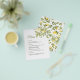 Este Menú de Limón y Verdor Rústico con un dibujo de acuarela de una corona consistente en exuberante verdor y limones decorará perfectamente la fiesta de verano. El reverso de este menú es un hermoso patrón de limones y verdes.