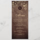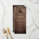 Podrá disfrutar de un viaje culinario tan cautivador como su historia de amor con nuestro elegante menú rústico de bodas de madera. Personalizado con las iniciales de los monogramas de la novia y el novio, y adornado con un vintage encaje de flores de oro de boho, promete una fiesta para los sentidos, donde cada plato está impregnado de encanto rústico y elegancia intemporal.