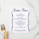 Se puede personalizar este elegante menú de la cena en azul y blanco con un ligero toque de purpurina. Puede cambiar el tipo de letra y los colores de la mayor parte del texto e incluso el color de fondo. Diseñado por Amelia Carrie y vendido exclusivamente a través de GlitterInvitations.com Nota: Se trata de una reproducción gráfica de impresión o de una obra de arte y no contiene ningún purpurina desordenado.