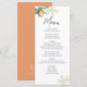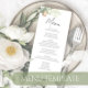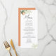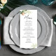 Aumente su recepción nupcial con nuestras elegantes tarjetas de menú, con sofisticados guiones caligráficos y diseño minimalista. Perfecto para una cena refinada, cada tarjeta exhibe flores de melocotón acuarela y exuberante vegetación botánica, ideal para celebraciones de primavera, verano o otoño. Las clásicas y tradicionales tarjetas de menú le dan un toque elegante a la decoración de las mesas, realzando la belleza de su boda de inspiración huerta. Personalizar para complementar su tema único y deleitar a sus huéspedes con cada plato de la comida.