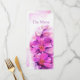 Doble cara simple estilo moderno estilizado de corazón en forma de orquídea radiante de color agua suelto arte floral menú de cena de la boda. Únicamente pintado en acuarela y diseñado por Sarah Trett.