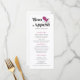 Estos menús bodas de estilo vintage de 4" x 9" incluyen letras negras con un elegante título, "Bon Appetit", en grandes letras negras con un acento cardíaco magenta en un fondo de alabastro. La carta incluye dos entrantes, dos entrantes y dos postres y los nombres de las parejas bodas.