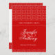 Menú de cena de la recepción de boda blanca y roja de doble cara. Personalice con sus cuatro detalles de la comida, el nombre de la novia y del novio y la fecha de boda. Diseñado por www.mylittleeden.com