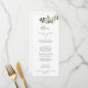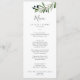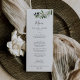 Esta moderna carta de menú para la cena boda de la rama de olivo es perfecta para un boda boho. El diseño rústico y elegante presenta una sencilla acuarela de hojas botánicas verdes y aceitunas negras en una pequeña rama de ambiente mediterráneo clásico. Este menú se puede utilizar para la recepción de bodas, la cena de ensayo o cualquier evento.