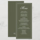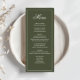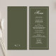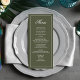 Elevar la recepción de bodas con esta carta de menú boda, diseñada con caligrafía simple y elegante y un estilo formal clásico. Este menú de recepción de elegante color verde oliva le da un toque sofisticado a su mesa de fiesta o celebración de bodas. Con un diseño tradicional de tipografía, incluye el monograma de la novia y el novio, con sellos y iniciales elegantes, para un aspecto personalizado y refinado. Una estética limpia, básica y mínima convierte este menú en algo inalcanzable