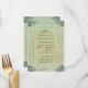 Un menú vintage para la cena de bodas con plumas de pavo real y un delicado borde de caligrafía. Esta invitación forma parte de un conjunto completo.