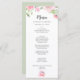 Esta carta de menú de la cena boda peony de primavera es perfecta para un boda elegante. El elegante diseño de primavera o verano incluye peonías modernas de color acuático rosa pastel y hojas de color verde salado con un toque rústico de campo.