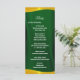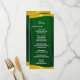 Este elegante menú de boda verde esmeralda y dorado es perfecto para su gran día. Este menú está decorado con una bonita seda verde y un dorado, ideal para una novia que quiere un bonito toque verde. Incluye todo lo necesario para la recepción, como el primer plato, el segundo, el entrante y el postre. Puede personalizar incluyendo sus artículos favoritos.