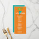 Una plantilla de menú colorida y linda para un restaurante mexicano o una fiesta de cena con tema mexicano. Este menú lindo tiene una ilustración dibujada a mano de un cactus mexicano contra un fondo naranja brillante personalizable. El texto es divertido y se puede personalizar para satisfacer sus necesidades.