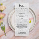 Tarjeta de menú de cena de la fiesta de Navidad. Personalice y agregue un nombre/evento, fecha y menú. Un fondo con apariencia de plata falsa, texto negro.