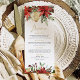 La carta de la cena Navidad incluye flores de la poinsettia de color agua y flecks de Relieve metalizado de oro falso. Edite fácilmente *most* frases para satisfacer las necesidades de tu evento.