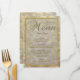 Se puede personalizar este elegante menú de la cena en tonos dorados. Puede cambiar el tipo de letra y los colores de la mayor parte del texto. Diseñado por Amelia Carrie y vendido exclusivamente a través de GlitterInvitations.com Nota: Se trata de una reproducción gráfica de impresión o de una obra de arte y no contiene ningún purpurina desordenado.