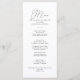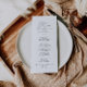 Esta tarjeta de menú de cena minimalista chic es perfecta para una boda rústica. El diseño simple y elegante presenta tipografía de escritura clásica y elegante en negro y blanco.
