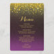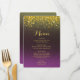 Se puede personalizar este moderno y sofisticado menú de cena de confetti morado y dorado. Puede cambiar el tipo de letra y los colores de la mayor parte del texto. Diseñado por Amelia Carrie y vendido exclusivamente a través de GlitterInvitations.com Nota: Se trata de una reproducción gráfica de impresión o de una obra de arte y no contiene ningún purpurina desordenado.