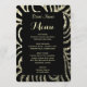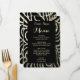 Se puede personalizar este moderno y sofisticado menú de la cena en tonos dorados y negros. Puede cambiar el tipo de letra y los colores de la mayor parte del texto. Diseñado por Amelia Carrie y vendido exclusivamente a través de GlitterInvitations.com Nota: Se trata de una reproducción gráfica de impresión o de una obra de arte y no contiene ningún purpurina desordenado.