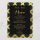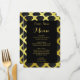 Este moderno y sofisticado menú para la cena de quatrefoil negro y dorado puede ser personalizado. Puede cambiar el tipo de letra y los colores de la mayor parte del texto. Diseñado por Amelia Carrie y vendido exclusivamente a través de GlitterInvitations.com Nota: Se trata de una reproducción gráfica de impresión o de una obra de arte y no contiene ningún purpurina desordenado.