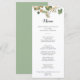 La carta de la cena, de color verde dorado tropical, es perfecta para un boda rústico. El diseño presenta un bonito dorado tropical pintado a mano y un follaje verde. Este menú se puede utilizar para la recepción de bodas, la cena de ensayo, la ducha de novia o cualquier otro evento.